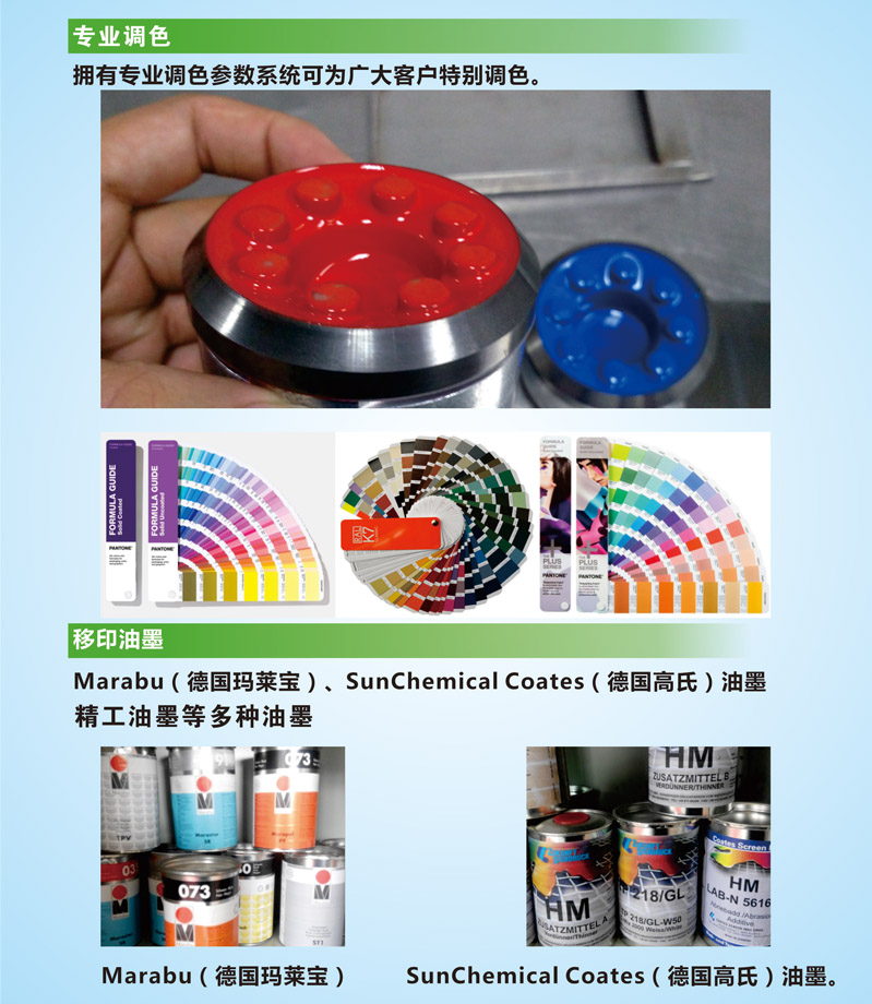 專業的技術、規范的管理、踏實的態度、優質的服務我們提供全方位移印解決方案!